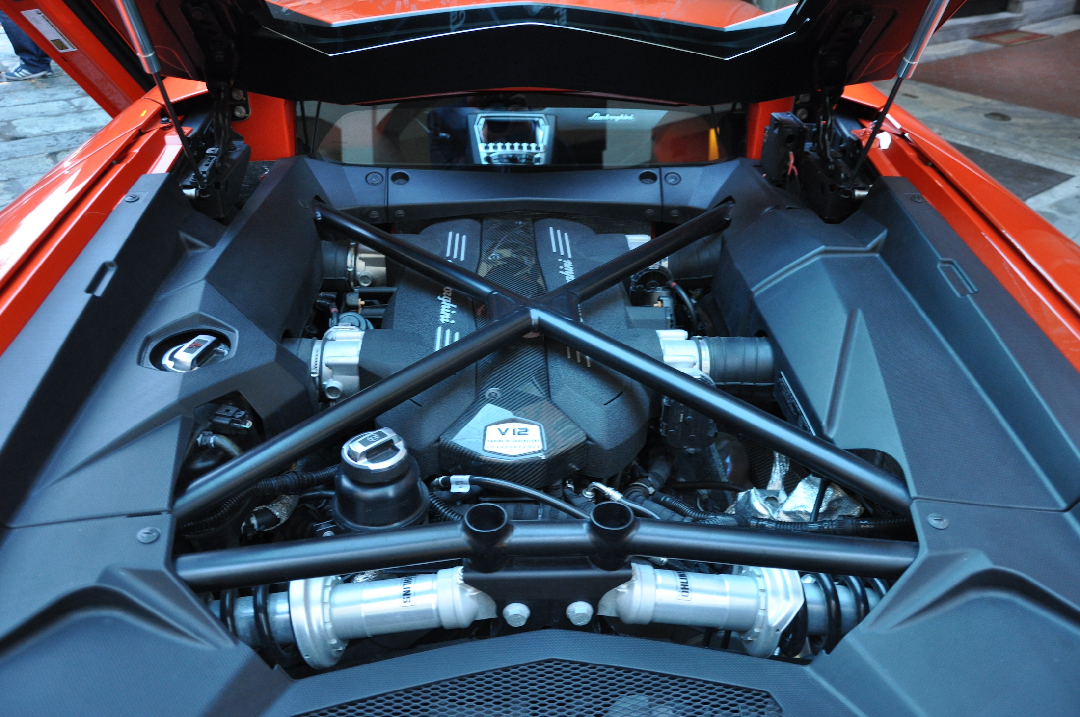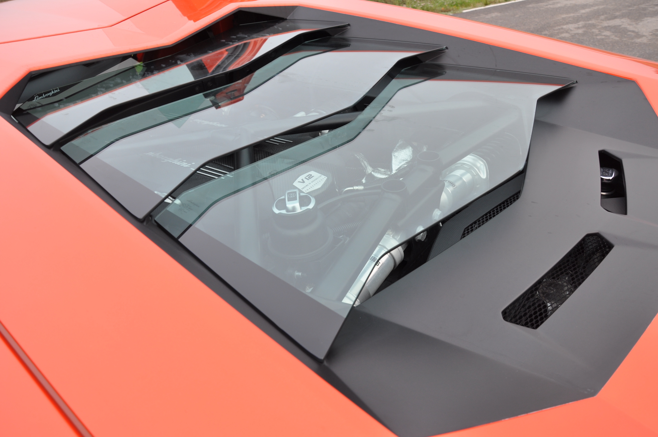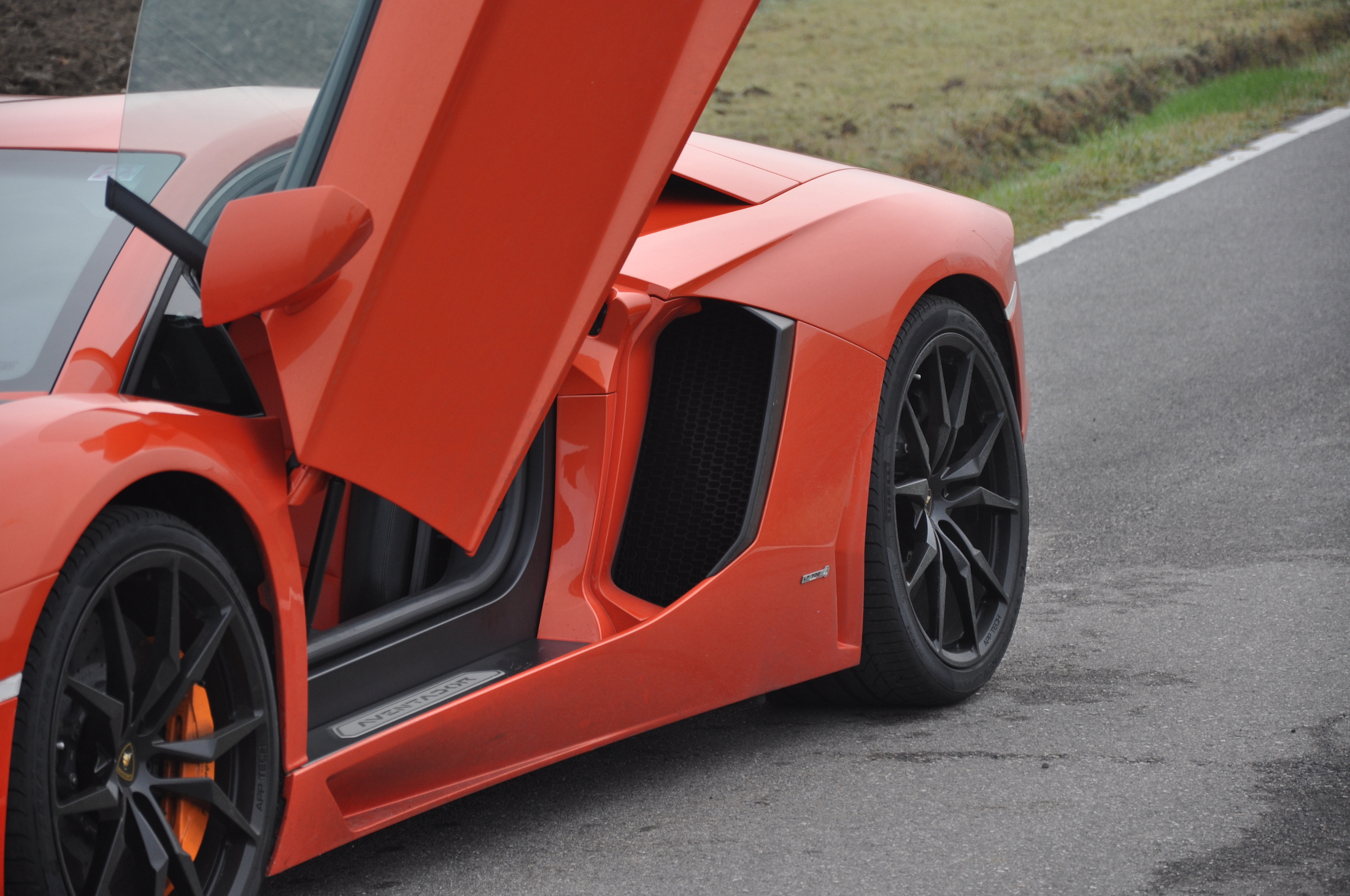 Ein paar Tage später lande ich nach kurzem Flug von Düsseldorf in München. Der orangefarbene Lamborghini Aventador LP 700-4 wartet bereits. Kurze Instruktion, kurzes Kennenlernen (Rundumsicht nicht vorhanden) und schon geht´s los Richtung Italien. Ein paar Kilometer vor der Grenze ist die Autobahn menschenleer. Wann, wenn nicht jetzt, denke ich mir und trete das Gaspedal erstmals voll durch. Die 12 Zylinder des 6,5-Liter V12-Mittelmotors werden geflutet, nur um sofort von abertausenden kleinen Explosionen erschüttert zu werden. Die Reifen krallen sich in den Asphalt, von allen Rädern angeschoben, stürmt der Aventador nach vorn. Ein Wahnsinn in orange. Bei 300 km/h lasse ich es gut sein und genieße auf der weiteren Fahrt lieber kurze Zwischensprints und den orkanartigen Sound dieses italienischen Meisterwerks.