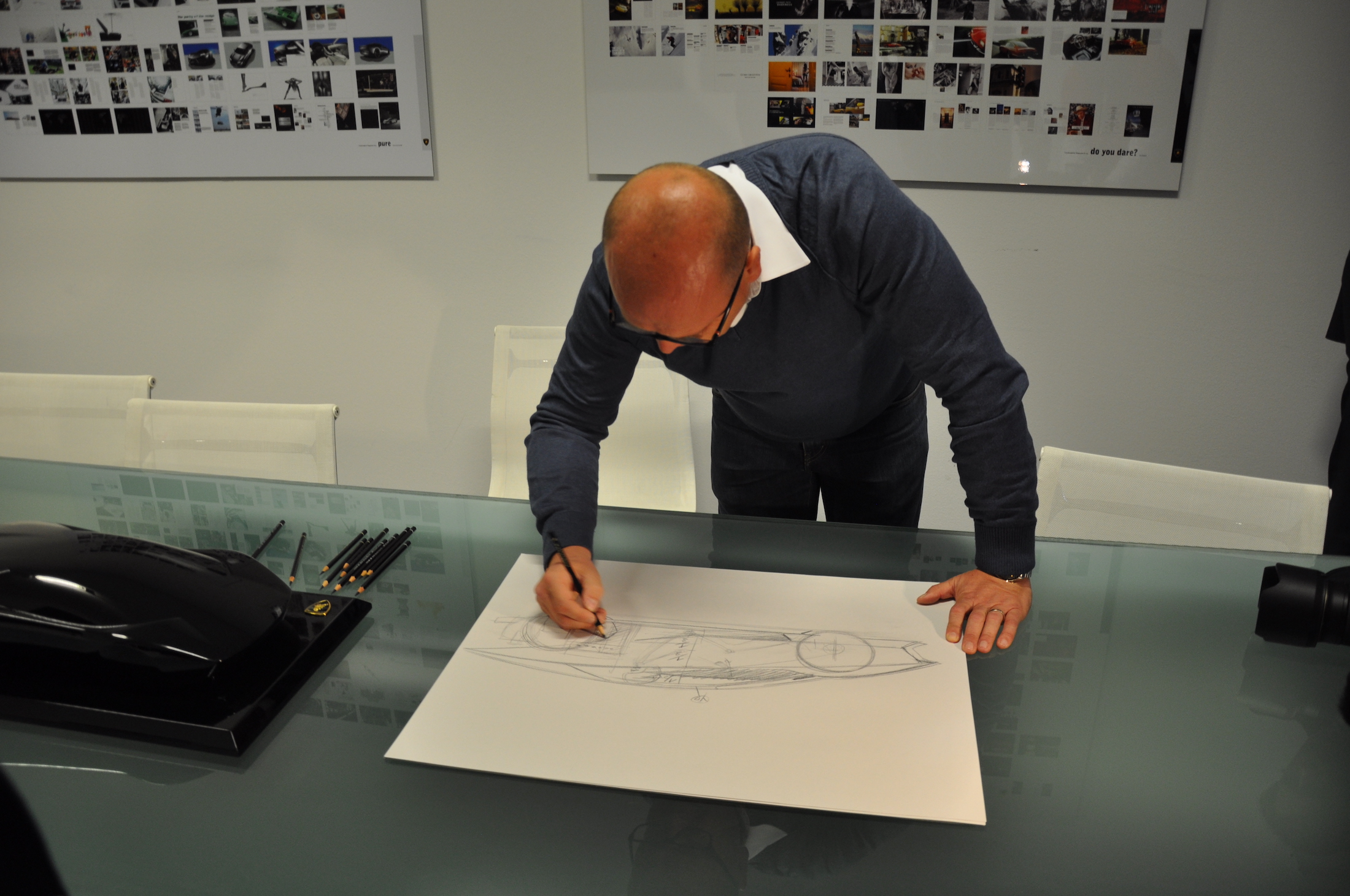 Nach Hause ohne einen Abstecher ins Lamborghini-Museum gemacht zu haben? Undenkbar. Auch wenn der nicht allzu ferne Rückflug aufs Stresslevel drückt. Der Lamborghini-Pressemann kennt eine Abkürzung – einmal quer durch das gar nicht mal so große Großraumbüro des Lamborghini Design-Studios Centro Stile Lamborghini. Hier arbeiten die größten Talente (zumindest sagt Lamborghini das) in Sachen Automobildesign aus aller Welt  in engem Austausch mit dem technischen Büro an der perfekten Kombination aus Form und Funktionalität. Bevor ich zu viele Eindrücke aufnehmen kann, werde ich schon weiter Richtung Ausgang und Museum geschoben.