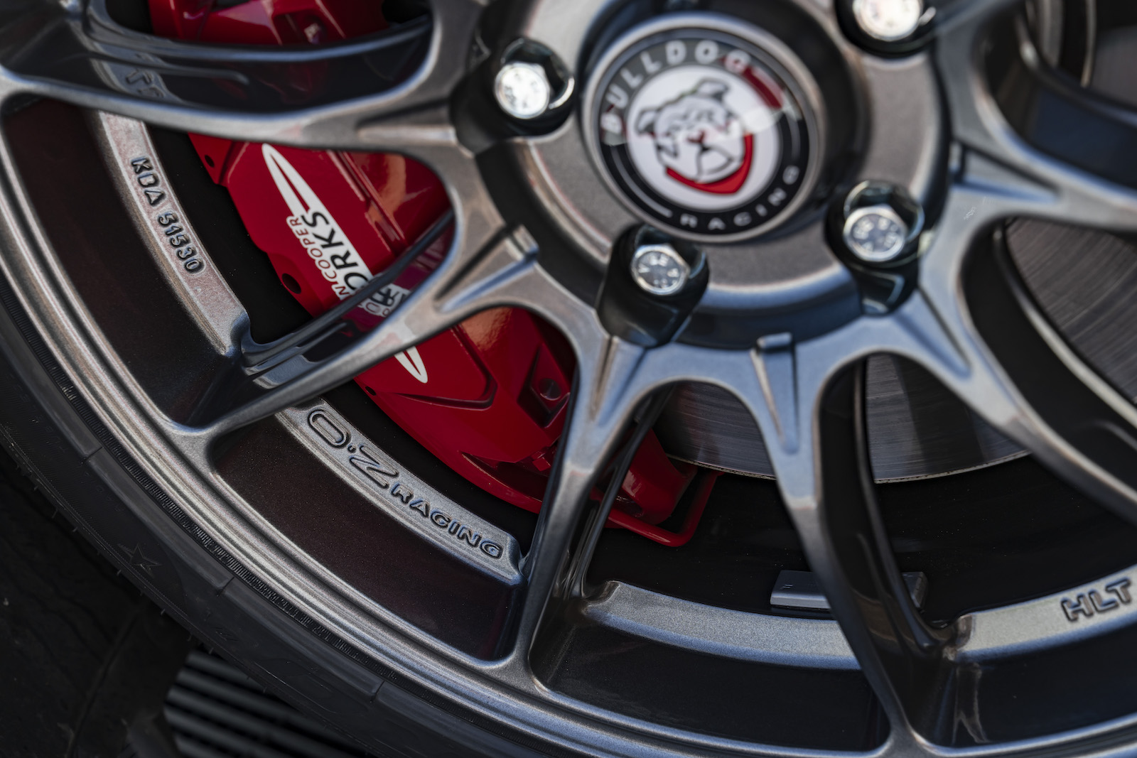 Die Kombination aus rennsportlichen Komponenten macht den MINI Bulldog Racing Edition zu einem wahren Fahrerlebnis. Das in Druck- und Zugstufendämpfung verstellbare KW V3 Fahrwerk verleiht nicht nur erhöhten Grip und verbessertes Einlenkverhalten, sondern auch eine gesteigerte Sicherheit in Grenzsituationen. Die OZ HyperGT Leichtmetallräder (17 Zoll) in Verbindung mit dem Remus Sportauspuff sorgen für eine subtile, dennoch unverkennbare Präsenz. Pirelli P Zero Performance Reifen (Größe 205/45R17) gewährleisten optimale Bodenhaftung, während das Stern Performance Parts Clubsport-Set die Rücksitzbank durch eine Gewichtsreduzierung und Performance-Verbesserung ersetzt.