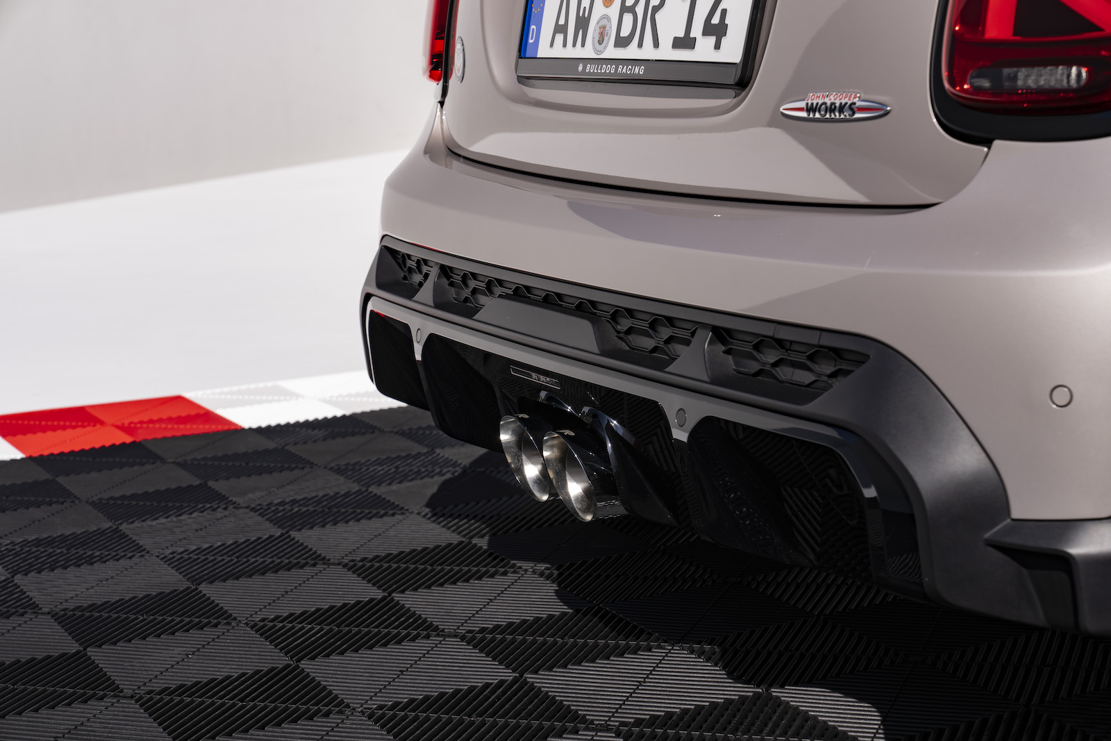 Der Mini in der Bulldog Racing Edition basiert auf dem Mini John Cooper Works mit einem 6-Gang Schaltgetriebe und einer Leistung von 231 PS (170 kW). Ein beeindruckendes maximales Drehmoment von 320 Nm verleiht diesem Tracktool eine bemerkenswerte Beschleunigung und Performance, die sowohl auf der Straße als auch auf der Rennstrecke überzeugt.