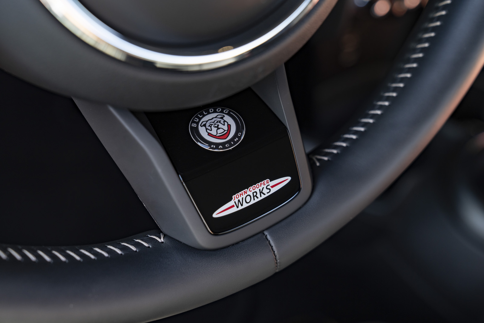 Der MINI Bulldog Racing Edition beeindruckt nicht nur durch seine Performance, sondern auch durch sein einzigartiges Design. Die markante Bulldog Racing Dachdekorfolie, ein Erkennungsmerkmal des Rennteams, verleiht dem Exterieur eine individuelle Note. Im Innenraum wird jede Edition mit einer individuellen Plakette versehen, die das Fahrzeug als Teil der limitierten Serie ausweist.